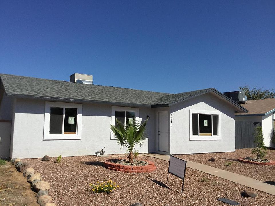 TURN KEY PROPERTY READY TO BE CALLED HOME**COMPLETELY REMODELED**KITCHEN FEATURES GRANITE COUNTERTOPS WITH TILED BACKSPLASH, WHITE CABINETRY WITH HARDWARE, NEW BLACK GE APPLIANCES & RECESSED CANNED LIGHTING**GRANITE TOPS IN BOTH BATHROOMS & TILED WALK IN SHOWER IN MASTER**NEWLY INSTALLED LAMINATE WOOD FLOORING THROUGHOUT & PLUSH CARPET IN BEDROOMS**TWO TONE INTERIOR PAINT**LARGE DIVING POOL**LOW MAINTENANCE DESERT LANDSCAPE**NEW AC & DUCTING**GREAT LOCATION NEAR ASU WEST CAMPUS**SHOW & SELL THIS ONE TODAY!!