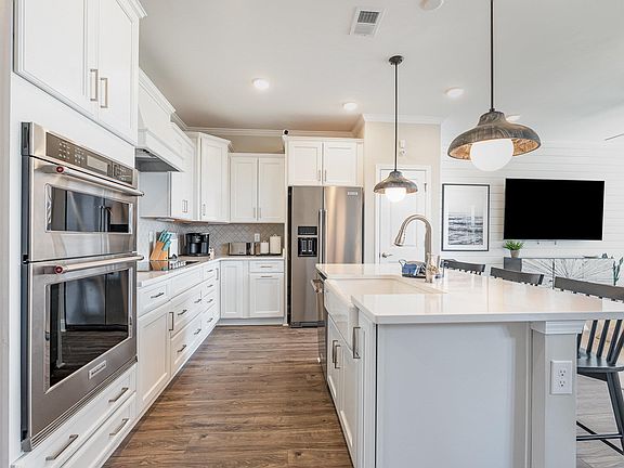 - Features: Kitchen Exhaust Fan, Kitchen Island, Pantry, Stainless Steel Appliances, Solid Surface Counters