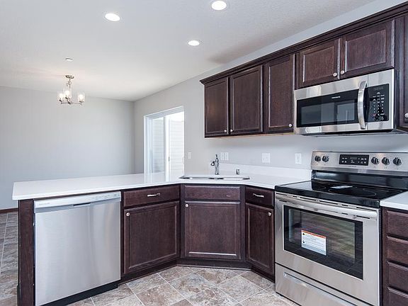 Great location and layout to this 3-bedroom, 3-bath new construction townhouse with attached garage and finished walkout basement. Stainless appliances, white painted oak cabinets and grey quartz countertops in the kitchen. 10x10 concrete patio off dining room patio door. Upstairs are two good size bedrooms, 2nd floor laundry and 2nd floor loft area. The lower level is completely finished with the 3rd bedroom, 3/4 bath and family room with recessed lights! Low association fee covers snow, lawncare, garbage, exterior insurance and exterior maintenance, along with being pet friendly.