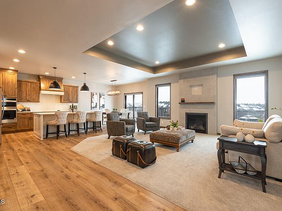 You'll LOVE what you see in this meticulously crafted NEW CONSTRUCTION ranch style home built by HALLMARK HOMES! A perfect blend of style and functionality this wonderful home is situated on a spacious lot with a landscaped yard w/ sprinklers and edging. Offering high-end finishes this 5 bedroom 3 bath home showcases a commitment to quality and plenty of space for privacy and easy living. Relax in the living room with a gas fireplace and walls of windows creating a cozy yet airy atmosphere . The gorgeous Custom Kitchen offers a spacious center island , a pantry you will love for all your food items and kitchen essentials, custom cabinets, quartz countertops, high end appliances and more. Convenient Main floor laundry is adjacent to the garage and kitchen. Three bedrooms on the main level including the primary suite that offers an expansive vanity w/ dual sinks, walk in shower w/ sleek glass enclosure and a nice sized walk in closet. The lower level family room offers a wet bar creating a warm atmosphere for socializing and gatherings. The walk-out adds an extra dimension to the home, allowing for exterior recreational areas. Two additional bedrooms and full bath complete this level. The triple garage offers 912 finished sq ft fully finished w/ heater, openers, water and floor drain. See this great home today!