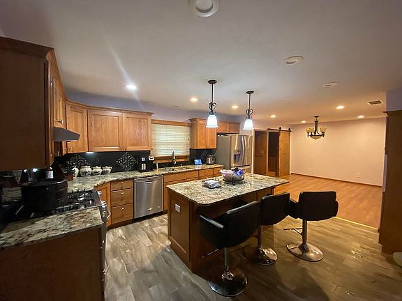 Welcome to your dream home! This stunning 3-bedroom house boasts a bonus room with a cozy fireplace, perfect for those chilly evenings. Step outside to your very own backyard oasis, complete with an in-ground heated pool and a brand new heating system, ensuring year-round enjoyment. The redwood tiki hut is the perfect spot to entertain guests or relax with a good book. Inside, you'll find a host of modern amenities, including a newer 40-gallon hot water heater and new stainless steel appliances, including a smart LG gas stove. The finished basement features a wet bar, making it the ideal spot to host game nights or movie marathons. Situated on an almost-acre lot, this property boasts three wells, ensuring you'll never run out of water. Storage is never an issue with a two-car attached garage and a massive 4+ car unattached shop/garage that spans 2,253 square feet. With plenty of space to spread out, both inside and out, this home is the perfect blend of comfort and luxury. Don't miss your chance to make this stunning property your own!