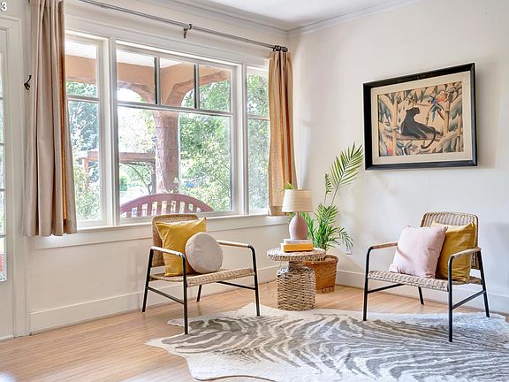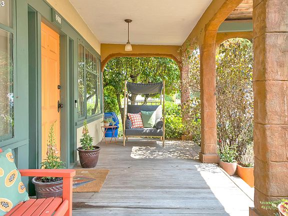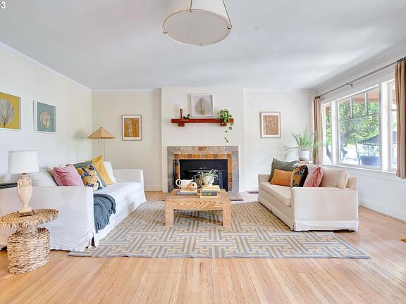Tucked away on a quiet street is the magical 1913 Stucco home of your dreams. Step inside and you'll find high ceilings, light filled rooms and unique built-ins throughout. With a large kitchen that flows into the dining room with ease and onto the Dasso bamboo deck you will be able to entertain inside and out. The recent backyard remodel includes new deck, hardscaping, drip system and raised beds for veggies that will be ready for your arrival. Upstairs welcomes you with vaulted ceilings, skylights and wood box beams that feels like you're in a european cottage. A sunroom off of the expansive primary can be used for so many things, an artist studio, office, yoga space, or to grow starts for your garden. The unique upstairs bath has a clawfoot tub, walk-in shower, and wood vanity with copper sink.In the front yard you'll have a Persimmon and apple tree, grapes, blueberries and strawberries plus mature plantings including Lions Head Japanese Maples. This is a must see home! [Home Energy Score = 1. HES Report at https://rpt.greenbuildingregistry.com/hes/OR10220837]