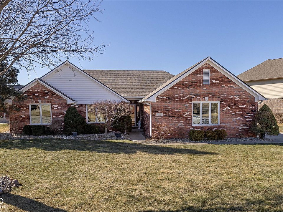 Welcome home to this meticulously maintained 3 Bedroom 2.5 Bath all-brick ranch, offering quality craftsmanship with updates throughout! Conveniently located with easy access to I-69, this home features an open-concept design tall ceilings and cozy gas fireplace, creating an inviting atmosphere. Recent upgrades include a new roof (2024), new HVAC and water heater (2019), and new windows (2017) for peace of mind. The stunning master bath was completely renovated in 2023, providing a spacious retreat. The kitchen boasts all stainless steel appliances, perfect for any home chef. Enjoy outdoor living on the back patio, ideal for relaxing or entertaining. The home also features a full-yard irrigation system that waters both lawn and plants around the home, keeping your landscaping lush and vibrant year-round. The spacious two-car garage adds extra convenience. Don't miss this Move-in Ready Gem - schedule your showing today!