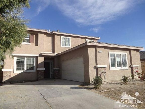 Perfect for a big family! Spacious 2596 Square foot HUD home at a very reasonable price! This lovely home is located in the community of Rancho Cielo in Coachella. Large 4 bedroom 3 bathroom house, with a master suite upstairs. The master bath has separate tub and shower enclosures ( one bedroom downstairs the other 3 upstairs), a large living room and a separate dining room, an open kitchen with an enormous walk-in pantry, cabinets throughout the house, entertainment loft upstairs, large Backyard, Great floor plan layout, all the bedroom have large closets. The laundry is located in the second level which adds privacy and convenience. Big backyard completely walled! Lots of privacy. 2 AC units, one for downstairs and one for upstairs to save energy. This is an excellent purchase. Close to shopping centers, restaurants and entertainment. Come take a look at this great home!