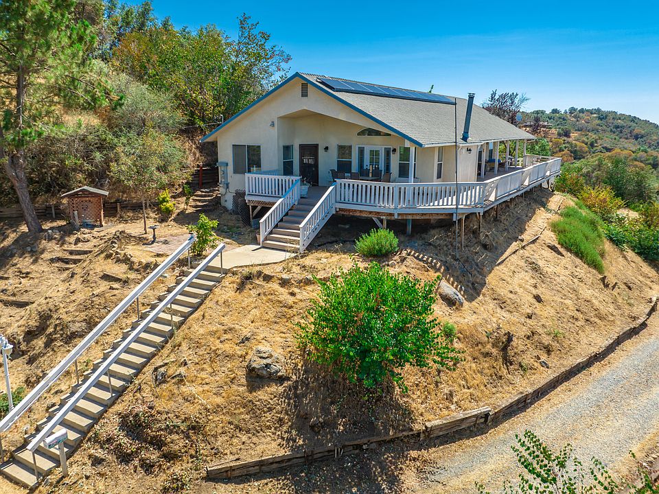 Welcome to this charming home nestled in Squaw Valley, located in Fresno County, California. Situated at the foothills of the majestic Sierra Nevada mountains, this property offers a desirable location just below Kings Canyon National Park. As you enter the picturesque Squaw Valley, you'll be greeted by the tranquility and nature that encompasses this home. Settled in a cozy cul-de-sac, this home offers comfortable living space spanning 2,035 square feet. This home features 2 bedrooms and 2 bathrooms. Beautiful French doors lead you into a bonus room that can be used as an office or additional living space. The large windows throughout the home provide plenty of natural light. This home features a fireplace with mantle, wood laminate flooring throughout the main living spaces, tile in all wet areas and built-in hallway cabinets for extra storage. Built in 1996, this home comes with a detached 2-car garage, providing ample space for parking and storage. This house sits on 5.19 acres, with an additional parcel of 4.93 acres for a total of 10.12 acres. Enjoy the panoramic views from your deck, where you can bask in the serene surroundings and enjoy the beauty of nature. The property also boasts a leased solar system, which offers an eco-friendly and cost-effective energy solution. Accessibility is a priority in this home, as it features a wheelchair accessible ramp, ensuring that everyone can move freely throughout the property. The home is equipped with a septic system, ensuring efficient waste management. This property falls within the Dunlap Elementary and Reedley High School districts, providing excellent educational opportunities for children. Whether you are seeking a peaceful retreat or a place to settle down, this home in Squaw Valley offers a blend of natural beauty, convenient amenities, and a welcoming community. Don't miss this opportunity to make this house your dream home!