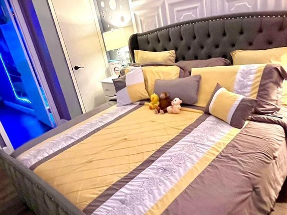 Private room with a king size bed, 55 inch television in room. The room is in the basement which means it's quiet. The house is in a quiet neighborhood. The basement has a movie theater, karaoke room, kitchen area, & gaming area. The outdoor has a screened in porch plus an outdoor patio with a large pool & firepit. This home has loads of fun things to do. Must see in person, schedule your visit today . No smoking inside and must be clean