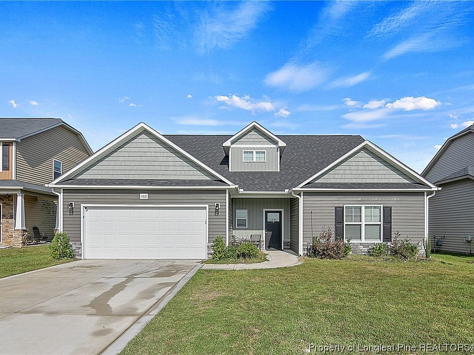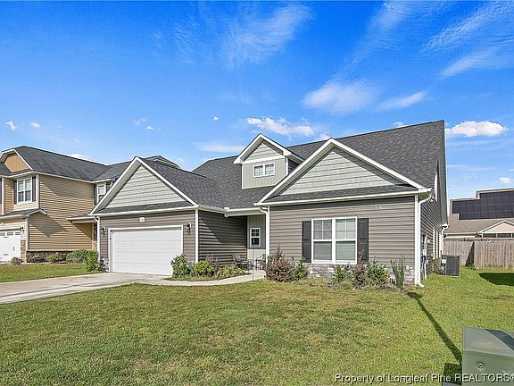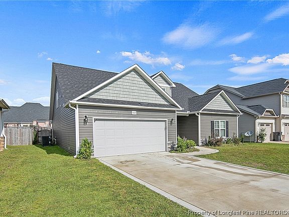 Welcome to the Gardens at Cypress Lakes! This charming home has so much to offer. Open floor plan with inviting foyer leading to the living room with a cozy fireplace, large kitchen with eat in dinning featuring granite countertops, island, and pantry. Primary suite downstairs with a spacious walk-in closet, dual sink vanity, garden tub, and separate standing shower. Two guest bedrooms, full guest bath, and laundry room round out the first floor. The second floor opens to a loft space boasting a 2nd fireplace, built in shelving, and 2 guest bedrooms and guest bath. Relax on the back patio in the privacy fenced backyard or enjoy the community amenities such as the pool, splash pad, and park- located right across the street! Convenient to shopping, restaurants, and an easy commute to Fort Liberty. Schedule your showing today.