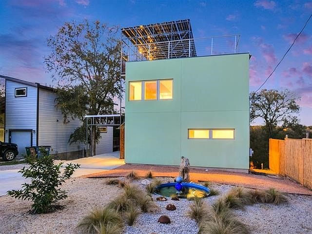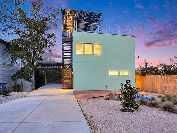 Architecturally innovative, Noah Riley designed, high efficiency 5 Star Rated new construction home in the heart of East Austin 15 minutes to downtown. Highlights include solar, LED lighting, tankless, argon double pane windows, Zero VOC paint, SIPS exterior, rain water collection system and xeriscaping. Interior showcases abundant natural light, sleek stainless and roof top deck with stunning views. Low taxes. No HOA. All this plus close to Mueller amenities, parks, shopping and dining. Truly a rare gem