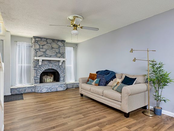 - Fireplace features: Wood Burning, Stone, Living Room, Gas Starter