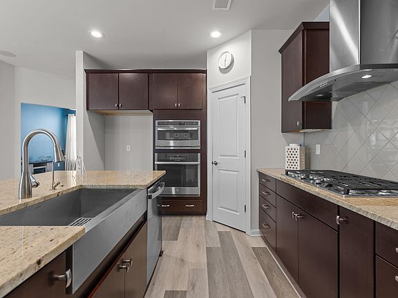 Popular Ranch-style plan offering 3 bedrooms, 3 baths, 2,268 sq ft, and a 2-car garage! $3,000 Paint Allowance! Pre-Wired for Speakers! Enjoy maintenance-free living with yard care included in the monthly HOA dues, giving you more time to relax and entertain. The spacious kitchen is a chef's dream, featuring stained cabinetry with soft close cabinets with crown trim and brushed nickel hardware, under-cabinet lighting, quartz countertops, and a diagonal ceramic tile backsplash. A large center island with barstool seating is illuminated by recessed lighting. Stainless steel appliances, including a 5-burner gas cooktop with a stainless steel vent hood, and a built-in wall oven and microwave, complete this modern kitchen. The primary suite is a serene retreat with a tray ceiling and walk-in closet. The adjoining bathroom features a dual vanity with granite countertops, brushed nickel fixtures, tile flooring, and a tiled shower with bench seat. The kitchen flows seamlessly into the dining area, and then into the family room with a cozy gas log fireplace. The entrance hall greets you with crown molding, chair rail, and hardwood-style floors that flow throughout the main level, including the primary suite and a bright office. A second bedroom on the main level offers added convenience, while the second floor includes another bedroom and a loft/bonus room, recessed lighting and built-in ceiling speakers. From the inviting covered front porch to the screened porch, this home is perfect for indoor-outdoor living. Conveniently located near I-540, RDU, and RTP, this home truly has it all! Schedule an appointment today, and make this home your own!