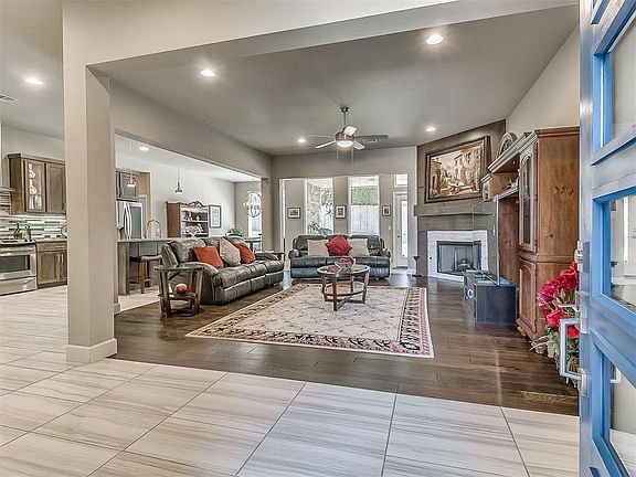 Beautiful 4 Bedroom Home Located in the much desired Glenhurst Addition! This home features a wonderful open floor plan with a spacious kitchen, living area, and dining. The entry opens to the large living area that includes high ceilings and a nice fireplace with mantle. The kitchen has beautiful granite countertops, a nice-sized island, a gas range with vented hood, stainless appliances, and lots of gorgeous cabinetry. The primary suite includes a huge walk-in closet and an amazing full bathroom with double vanities, a soaker tub, and a large shower with seat. One of the secondary bedrooms faces the street and would be perfect for an office! The other bedrooms are good sized as well. The flooring is beautiful throughout, with Travertine tile, wood, and carpet. You'll love the backyard which is fenced and includes a covered patio. Home also includes a storm shelter, sprinkler system, and security system. The Glenhurst Addition is conveniently located near the turnpike and major highways with plenty of options for restaurants, shopping, and entertainment. Easy to show--come see this one today!