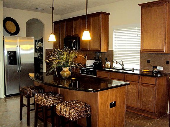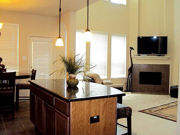 This lovely 4/2.5 home is just waiting for you! The living room has a wonderful 2 story ceiling with a wall of widows offering lots of natural light. Kitchen has granite, tile, stainless steel appliances, gas cooking and large island. Covered back patio overlooks spacious backyard and best of all, no neighbor behind you. Lakes of Savannah is a great community offering a club house, pool, parks, splash pad, several lakes and miles of sidewalks. Quick access to Hwy. 6 & 288.