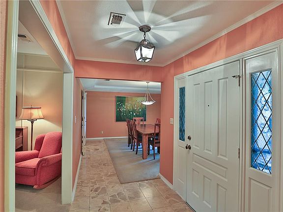 Charming one-story brick home surrounded by lush lawn & mature trees. Interior features large bedrooms, two dining areas, & two living areas with fireplace & wet bar. Galley kitchen with ample cabinet and counter space. Private owner's suite with sitting area, dual vanity master bath, & walk-in closets. Split bedrooms & lots of storage. Peaceful backyard with large trees and a long, shaded covered porch for outdoor entertaining. Two car attached garage with swing driveway offers additional rear parking. Class IV roof with radiant barrier & extra insulation.