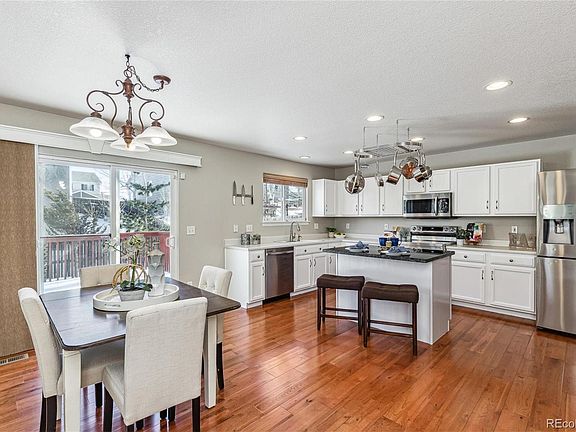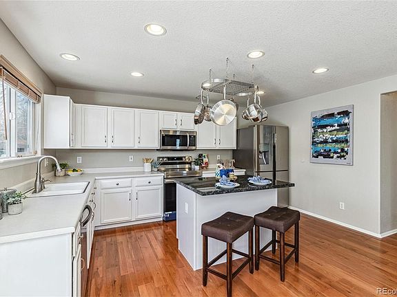 Fantastic, well maintained home in Stanford Hills! Located on a large corner lot with mountain views. This spectacular home features 4 large bedrooms and 3 baths. Almost 3000 finished square feet including a full, unfinished, 1000 square foot basement. The updated kitchen includes a brand new stainless steel dishwasher, microwave oven and range. Abundant natural lighting with an open floor plan as well as new interior paint throughout makes this an ideal home. The expansive backyard and newly resurfaced deck is perfect for entertaining. Very desirable location, Cherry Creek schools and easy access to E470, Southlands, open spaces and recreation.