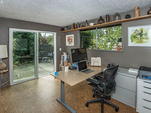 Modern Woodstock Ranch, 3" wide brazilian walnut floors in living and dining, slate in the kitchen. Newer kitchen with white cabinet faces and big pull outs. Heated tile floor in bathroom with subway tile shower. Big pantry/laundry room with 1/2 bath off gives a nice place to prep or fold clothes. One of the bedrooms is purposed as an office now with a white oak built in seating area and new cork floors and a big slider facing the lush backyard making it the best work from home office ever- i'm talking to you remote software dev's :) Cork flooring in the smaller of the bedrooms and really nice carpet in the 'master' bedroom. Closet systems installed in two closets as well. Fresh paint everywhere, new base installed throughout house and all the switch plates are screwless; nice, clean and modern.
