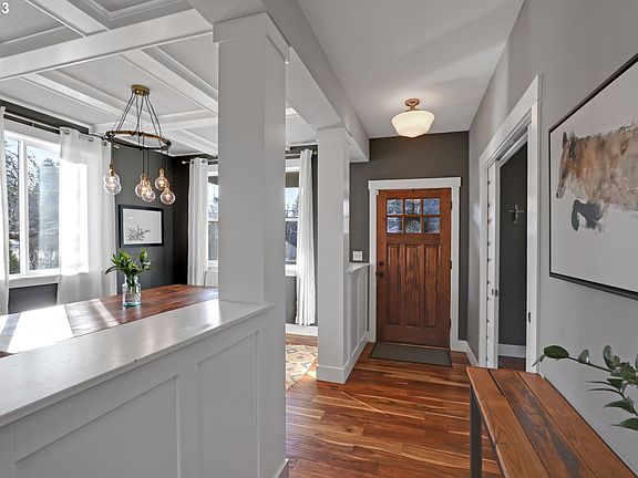 SW Portland classic foursquare built in 2015 with high-quality designer finishes located in Portland's Hayhurst neighborhood with a West Hills View. This spacious fl pl is flooded with natural light featuring hardwoods throughout, coffered ceilings & wainscoting for added charm - exceptional condition throughout! Large lot w/fully fenced yard, covered deck, back patio, play space & raised beds. Full sized bonus/flex space on lower level offers a multi-gen or schools/work from home possibilities! [Home Energy Score = 9. HES Report at https://rpt.greenbuildingregistry.com/hes/OR10147443]