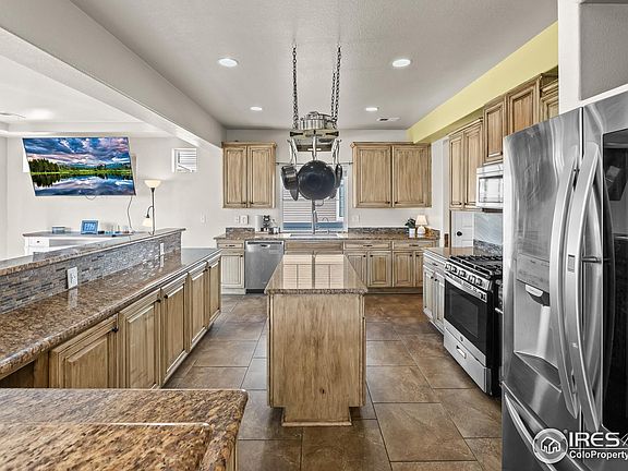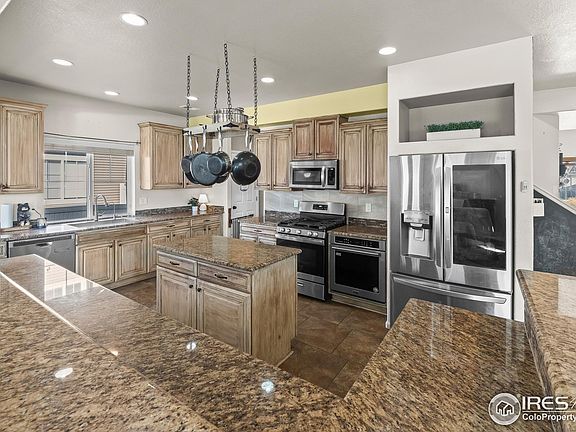 *RATE BUYDOWN OFFERED BY PREFERRED LENDER IF ELIGIBLE.* Pre-inspected for peace of mind and nestled along a greenbelt in the desirable Thompson River Ranch community, this thoughtfully designed home stands out from the crowd, offering a distinctive 5 bedroom, 4.5 bathroom floor plan with three en suites that is ideal for both everyday living and entertaining. Step inside to a charming open floor plan where home chefs will love the extensive cabinetry, granite countertops, separate pantry, island, and dual oven setup, perfect for holiday meals or multitasking. Embellished with tile flooring for easy maintenance, the upper level hosts 3 private en suites, flex space, and a laundry room. The spacious primary suite serves as a peaceful retreat with a coveted five-piece bathroom featuring with a double vanity, a separate soaking tub, and a spa-like walk-in shower, as well as a generous walk-in closet adorned in custom organizers. The home's most unique highlight is the dual en suite setup for both secondary bedrooms upstairs, which is a rare find that's perfect for guests, roommates, or those seeking extra privacy and convenience. A finished basement offers recreational space, two additional bedrooms, a full bathroom, and unfinished storage space, providing versatile options for work, rest, or play. Step outside to a backyard oasis where you will enjoy hosting large gatherings under the pergola on the expansive patio, gardening in the raised beds, or harvesting fruit from the property's mature apple, pear, and cherry trees. Just minutes from Loveland, Thompson River Ranch offers two swimming pools, three playgrounds, a disc golf course, paved walking and biking trails, a clubhouse with a fitness facility and gathering space, community events, and a PK-8 school. With immediate commutes to I-25 and Centerra, you'll love where you live in this unique home that is perfectly placed within a vibrant community.