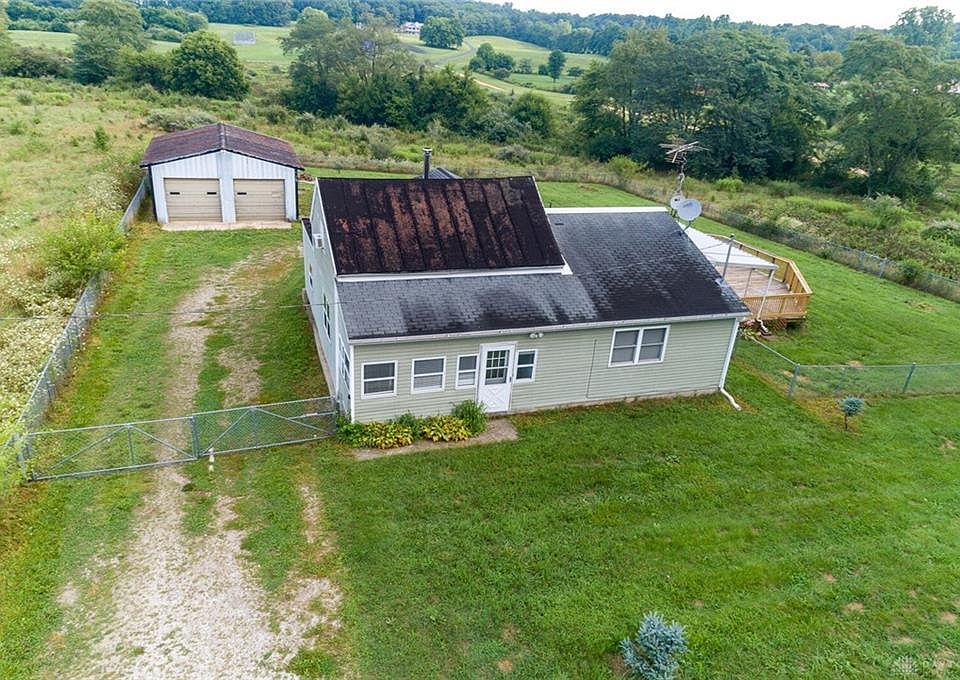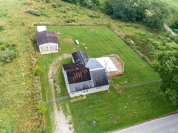 Peaceful Country Setting; Situated on over a Half Acre Lot! This Charming Cape Cod Features a Front Enclosed Porch, 3 Decent Size Bedrooms, 1 Full Bath; Entry Opens into a Spacious Living Room, Family Room with Wood Floors features a Bar, Built-In Shelving and a stairwell that leads you to the 3rd Bedroom; Master includes Double Closets. The Delightful Kitchen is Highlighted with Custom Wood Cabinets, Counter Space, New Flooring, Breakfast Bar, Range, Refrigerator and Dishwasher. Utility Room is just off the Kitchen. Step outside onto the Covered Patio with a Huge Deck to enjoy spectacular views of serene surroundings; 2 Car Detached Garage, Fenced in Yard. It's the best of country living while close to WPAFB, WSU, Highways, Restaurants and Shopping. Propane Tank is not owned. Neat and Clean and Ready to Go!