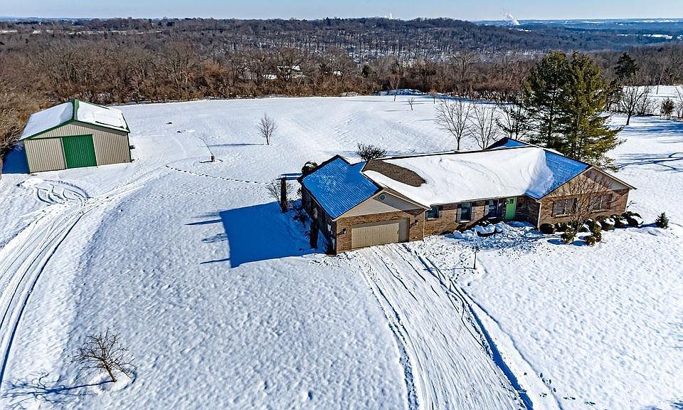 Welcome Home to Your Private Oasis! Explore this gorgeous 5-bedroom, 3-full bath brick ranch on 6.238 acres in Madison School District, set back 300 yards on a private drive. With over 4,000 sq ft of living space, including a finished walk-out basement, this home offers tranquility and spaciousness. Enjoy the covered deck and stone patio, ideal for entertaining, plus a massive 60x40 pole barn featuring an indoor basketball court, large sliding door, and overhead garage doors with electric, water, and solar power to cut utility costs, this property has it all! If you seek peace and serenity in a Country Setting, this is your Dream Home!