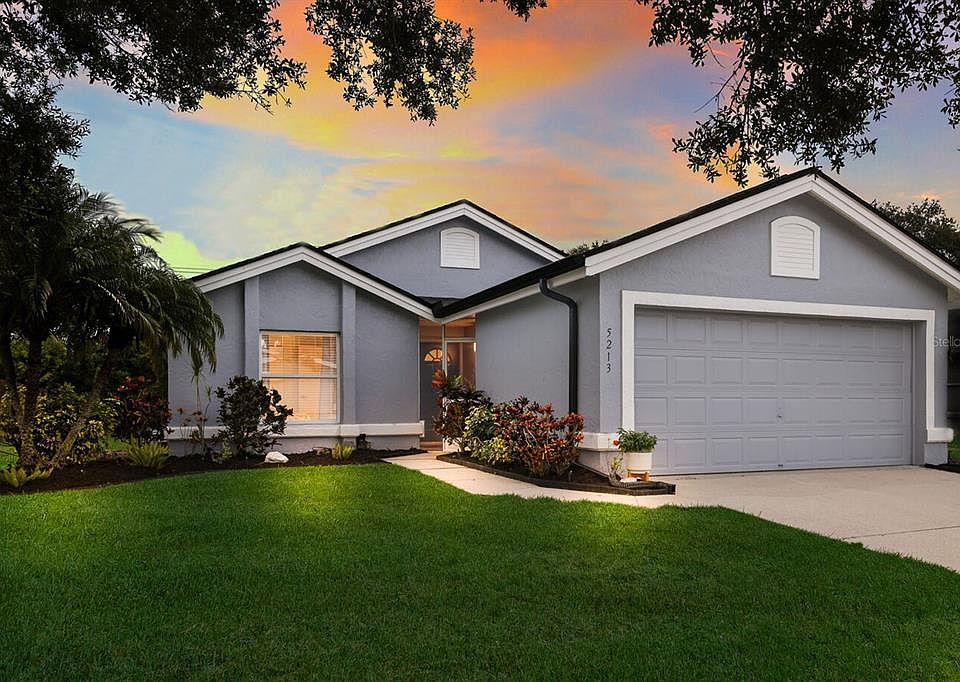 Welcome to this beautifully maintained 2-bedroom, 2-bathroom home with a spacious den/office, perfectly situated in the desirable Creekwood community. This home features a 4-year-old roof and thoughtful updates throughout, making it move-in ready. The open floor plan boasts vaulted ceilings, abundant natural light from three skylights, and a charming wood-burning fireplace in the great room, creating a warm and inviting atmosphere. The kitchen is both functional and stylish, equipped with newer stainless appliances, a large pantry, and a layout that flows seamlessly into the living and dining areas, perfect for entertaining or everyday living. The master suite is a true retreat, featuring dual walk-in closets and an en-suite bathroom with dual sinks and a tiled walk-in shower. The den/office offers flexibility to suit your needs, whether as a workspace, creative area, or even an overflow space for guests. The second bedroom is generously sized, ensuring comfort for family or visitors. Step outside to the spacious 24’x12’ screened lanai, where you can enjoy morning coffee or evening gatherings while overlooking the peaceful, private greenbelt view. Located within the Creekwood community, residents enjoy access to a sparkling pool and lighted tennis courts. Conveniently located near Highway 75, this home offers easy access to popular shopping and dining options, including Lowe’s, Starbucks, and Chick-fil-A, as well as nearby attractions like the University Town Center, downtown Lakewood Ranch, and Sarasota International Airport. With its prime location, updated features, and welcoming community, this home offers the perfect combination of comfort and convenience. Don’t miss the opportunity to make 5213 72nd Street East your new address!