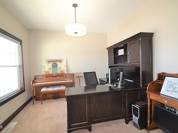 Your New Home Is Here! This beautiful two-story home with incredible finishes and tons of sunlight is located in NW Bismarck. This home is loaded with many great features – WOOD FLOORING, modern ALDER cabinetry, tons of sunlight, GRANITE counters, lower kitchen and bathroom cabinets with magnetic CHILD-SAFETY FEATURE, and much more. From the moment you approach this wonderful home you can picture yourself sitting on the delightful covered front porch enjoying those warm sunny days. Inside is a roomy foyer with a nearby FLEX ROOM – ideal for a home office or den or toy room. Next, you'll discover a fantastic living room with large windows for lots of natural light and a gorgeous Gas Fireplace with custom mantle. A wonderful dining area offers access to a large deck and views of the enormous backyard. The huge 12x15 covered MAINTENANCE-FREE DECK and maintenance-free railing is the perfect spot for grilling or entertaining or simply relaxing. PLUS, you'll enjoy a super-fun SLIDE and ZIP LINE right off the deck! The kitchen has so much to offer, including beautiful modern alder cabinetry, gorgeous granite counters capped off with fabulous custom tile backsplash, sleek stainless appliances and a stunning large white CENTER ISLAND offering that much needed extra counter space and storage not to mention the all-important extra seating. Want more kitchen storage? Don't miss the wonderful walk-in PANTRY offering even more storage for all your cooking essentials. Rounding out the main floor you'll find a convenient guest half-bath and easy access to the garage through a nice-sized mud room with coat closet, just off the kitchen. Moving to the upper level you'll discover a wonderful full guest bath, two spacious guest bedrooms, and an incredible PRIMARY SUITE with fantastic TRAY ceiling overlooking the backyard. This private oasis features a spa-like 4-piece bath boasting a FREE-STANDING SOAKER TUB, a beautiful CUSTOM TILED shower, private water closet, and dual sink vanity. Plus, you'll appreciate the huge primary walk-in closet. Don't miss the BONUS ROOM that has so many potential uses – a toy room, office, exercise room, media/theater room – you decide! Lastly, you will certainly appreciate the convenience of LAUNDRY ON THE UPPER LEVEL with cabinets, shelving, and a folding counter. The basement has DAYLIGHT WINDOWS and is 1140 sf of opportunity waiting for you to finish and personalize to reflect your distinctive taste and style. The oversized 3-car garage is insulated, has h/c water and a floor drain. The extra-large lot offers a sandbox, garden area, and room to play. This lot is so spacious that you might just forget you are living in the city limits! This incredible home is in a great location with easy access to all the conveniences of nearby shopping, restaurants, and schools, parks and a fantastic trail system. This home truly is a MUST SEE! Contact a realtor today for a private showing.