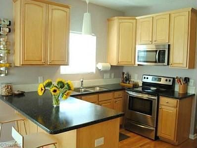 A Winner! Spacious, open, and inviting! Settle right-in! No updates needed! Dramatic vaulted ceiling in den and breakfast room. Lots of natural light! Very functional kitchen with solid surface countertops...and plenty of work space! Master suite with separate garden tub and shower. Lots of hardwood flooring. Fenced yard with patio and deck. Fun neighborhood fenced playground!Terrific location with easy access to Hwy 421. Minutes to WFUBMC, shopping, and restaurants. Meadowlark/Reagan schools!