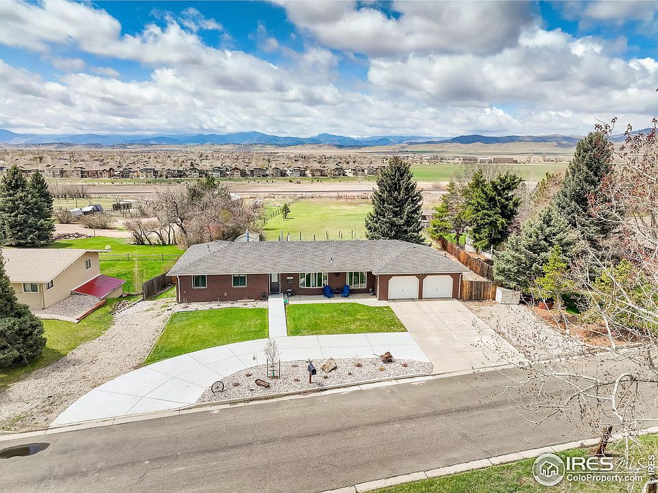 This stunning property in desirable Ranch Acres is the ideal location off Hwy 287 and just outside the city limits in Larimer County (No HOA). This updated ranch floor plan is the perfect choice for the buyer that is looking for easy main floor living, incredible Front Range mountain views, and a large lot (~0.5 acre) with room to roam. Nearly everything in this home is brand new (<2yrs old) and updated, including interior and exterior light fixtures, new kitchen cabinets, new appliances including extra wide cook top, pot filler, and double ovens, new corian counter tops in kitchen and master ensuite, new hardwood, tile, and carpet flooring throughout entire home, new paint, new trim, new doors, a new furnace, new AC unit, and a new oversized hot water heater. Everywhere you turn there is something new! This home is perfect if you are looking to age in place, or for those with mobility challenges. The home is fully wheelchair accessible, with wide doorways, ramps, and a zero threshold shower. The lower level finished basement has two addition bedrooms, a bathroom, plenty of storage, and is perfect for a teen hang out, TV room, or man cave and even walks-out to the back yard. The open floor plan has loads of natural light that floods in through the large (solar tinted) windows creates a bright and welcoming atmosphere. The spacious master bedroom features a beautiful completely remodeled ensuite bathroom, zero threshold shower, double shower heads, and a walk in closet. The other two main level bedrooms are also well-appointed and designed with comfort in mind. The property's outdoor spaces are just as impressive! Beautifully landscaped yard with new shrubs and flowers, new concrete circle driveway with concrete access ramp into the home, and a large front patio area. The large back deck with epic mountain views is perfect for entertaining while watching the sunset. Whether you're enjoying the sunshine or taking in the Colorado views, this property has it all.