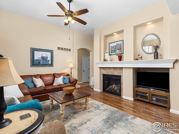 Welcome to your serene sanctuary on the fringes of a charming pocket neighborhood! This single-story home offers a perfect balance of privacy and community, embraced by mature xeriscaping and vibrant seasonal perennials. Start your day on the sprawling main porch, ideal for sipping coffee and extending warm welcomes. Inside, are impeccable genuine wood floors, updated white shaker cabinets, and granite counters in the airy kitchen with wainscoting! Southern light spreads through the living space, creating an open inviting plan anchored by a newly enlarged gas fireplace for cozy evenings. The main floor master retreat overlooks the tranquil backyard, while ample secondary bedrooms offer versatility. A newly remodeled basement boasts two additional bedrooms and a bath with a spacious entertainment area, perfect for multi-generational living or leisure. Step outside to a captivating oasis with an expansive deck for summer alfresco dining, a newer awning, and a pergola zone complete with a fan for taking in nature, roasting marshmallows, watching wildlife, or scrolling Pinterest. Enjoy the clever peek-a-boo fence, offering glimpses of the vast adjacent agricultural lots. With updated roof, furnace, and hot water heater, this pristine turn-key jewel awaits its next owners. Step out your door to the nearby open walking path to the park, lake, or skate park-your perfect retreat awaits!