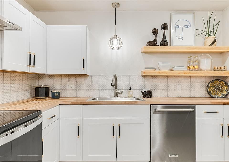Character with a modern twist in Zachary Taylor! This breezy 2bed/1bath home is updated throughout and ready for you to enjoy. The main living areas flow together seamlessly with natural light reflecting off the beautiful original wood floors. The kitchen is inviting with warm wood floating shelves and modern, white cabinets set off by butcher block countertops and a tiled backsplash. A sun porch/ laundry room is accessed from the kitchen. Connected by a hallway off of the living room are two bedrooms that share the fully updated bathroom. An attached one car garage provides additional storage or parking. The large, fully fenced back yard boasts both sunny lawn and mature trees. This home is just a short distance from the fabulous neighborhood park and all the local shops and restaurants of the Western Avenue District. A convenient location near Broadway Ext and I-44 puts Downtown OKC within easy reach.