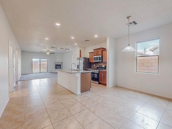 Need a fourth bedroom or a home office/flex room? Then you have come to the right listing! Light and bright, and newly built in 2022, you can go with the flow in this open concept living/kitchen/dining with high ceilings, recessed lighting and a dedicated laundry room. Bedroom/office is right off the entrance to give you "quiet" from the rest of the house. Eat-in kitchen with not only a breakfast bar, but a dedicated dining area. Slab granite countertops, custom tile backsplash and cabinets with a fantastic center island perfect for entertaining. Living room has a corner fireplace that is gas ignited with the flip of a switch. The Master is en-suite with a huge walk-in closet. Bathroom has a dual sinks, separate walk-in shower and a soaking tub. The other bedrooms share a full bath. The lot is completely walled in for the security of your pets so you can enjoy the mountain views from the covered patio. A perfect spot for your bbqs and al fresco dinning. Located off Agua Fria and a stone's throw from the 599 Bypass, shopping, schools, and a host of other amenities.
