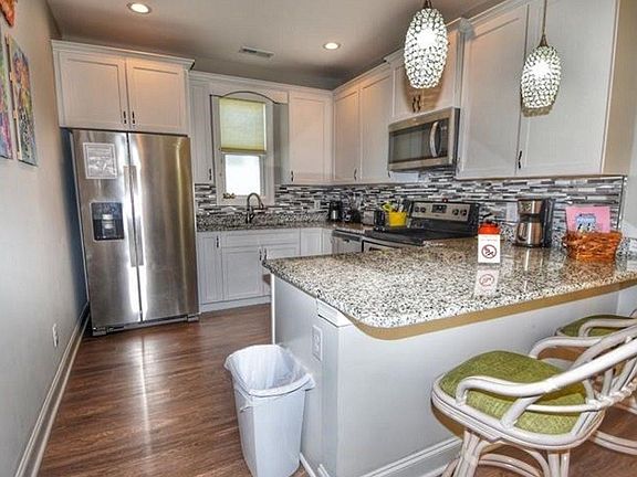 - Features: Breakfast Bar, Stainless Steel Appliances, Solid Surface Counters