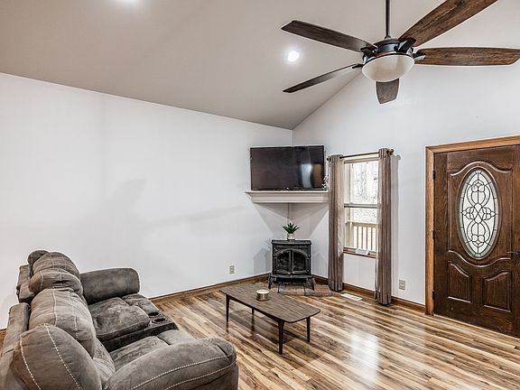 This beautiful home on 5.6 private acres blends stunning design with exceptional efficiency and comfort. Featuring a metal copper roof, this spacious property includes an open-concept living room, dining area, and kitchen, perfect for entertaining. With 3 bedrooms, 3 full baths, and a large rec room above an oversized 2-car garage, there’s plenty of space for work, play, and relaxation. High-quality finishes include Pergo and tile flooring, granite countertops, a striking sandstone backsplash. Built with 6-inch thick walls and energy-saving windows, this home offers remarkably low utility costs. Step outside to enjoy the 12’ x 22’ covered and screened deck, plus a separate grill deck, providing the perfect setting for outdoor living. Thoughtfully designed for convenience, this home also features a laundry room, pantry, 36-inch-wide doors for accessibility, and stainless appliances. A portable generator ensures peace of mind during emergencies. With beautiful craftsmanship, modern energy-efficient upgrades, and a serene setting, this property is truly a rare find—offering both luxury and practicality in one perfect package!