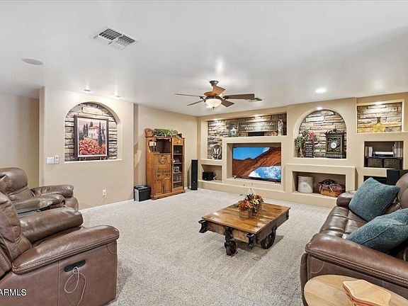 Don't miss this stunning Mediterranean home. This home has it all, gorgeous exterior, with circular paver drive, beautifully landscaped with low voltage lighting, turf in the rear, a sparkling play pool with beach area and bar stools, a 30' x 48' detached garage with (2) 10' x 12' doors, exterior ramada, and extensive paver patios. Inside you will find a spectacular 3990 sq. ft. open concept floorplan, with 4 bedrooms 3 bathrooms, a large den (or could be a 5th bedroom), huge family room, beautiful fireplace sitting area and a entertainers delight kitchen and dining room. The spacious primary bedroom has a sliding door that leads to a private patio and the primary bath has a large shower with rain shower head and a jetted tub with a door that leads out to the rear patio and backyard