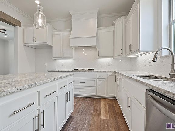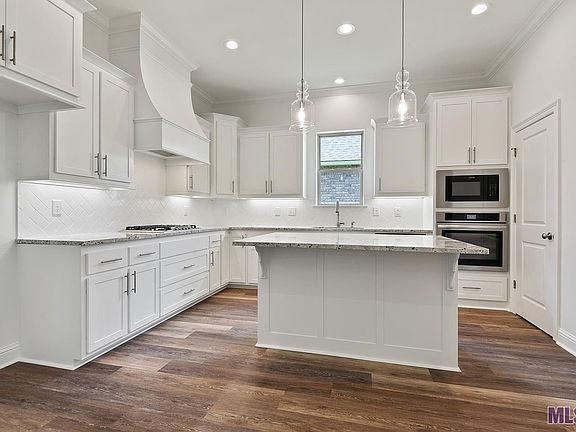 Stafford B floor plan by Level Homes ON THE LAKE, LARGE BACKYARD in Riverton, located in Darrow off of Hwy 22. Enter this one story split floor plan into the foyer which opens up into the formal dining and LARGE OPEN GREAT ROOM, LOTS OF NATURAL LIGHTING. The living room is centered around the vent-less gas fireplace with granite surround and has views to the large covered rear porch and backyard! The gourmet kitchen features painted custom cabinetry with under cabinet lighting and 5" hardware pulls, 3cm Absolute White granite, WHITE HERRINGONE BACKSPLASH, stainless steel appliances including a 36" 5-BURNER gas cooktop with single wall oven and built-in microwave, pendant lighting over the large center island, chrome plumbing fixtures and a large walk-in pantry. Master bedroom includes a spa-like bath featuring a separate 5' soaking tub and job-built tile shower, dual sinks with 3cm Absolute White countertops, framed mirrors, separate water closet, and large walk-in closet with custom wood shelving. Spacious laundry room and a study located off of the garage with a space for an optional built in desk. Patio will be plumbed for gas grill. Professionally landscaped and fully sodded. Home is READY NOW! Other lots and plans available.