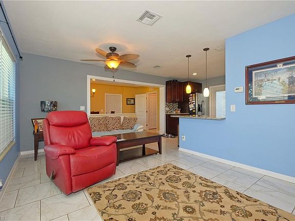 This Awesome Home is Located in the desirable "Yacht Club" Area. 1375 ft.² Three Bedroom, Two Bath home has been very nicely updated. You don't have to do anything as the Home is Move-in ready, Features include Impact Windows & Doors all the way around, New Roof in 2015, New Water Heater, Tile Floors, Whole House RO System, Kitchen features Newer Stainless Appliances, granite countertops and raised panel cabinets with soft close drawers. Bathrooms have been tastefully remodeled as well. Low Maintenance Beautiful Mature Landscaping on the Outside, The back yard with amazing fruit trees and large patio is completely fenced and offers plenty of room for a large pool. Get plenty of exercise in the Endless Pools® Fitness Systems and Michael Phelps Signature Swim Spas(tm).and then relax in the NEW screened lanai. All Remodeling permitted through Lee County! Make your appointment today! LIVING THE DREAM