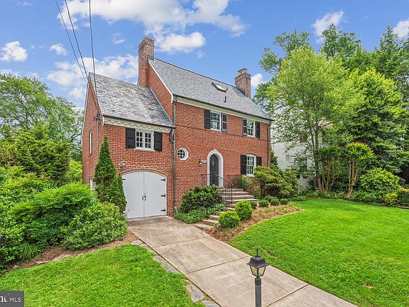 Welcome to 5213 Worthington Drive. This home is an estate and is being sold as-is. This charming 3 bedroom 2 full 2 half bath brick colonial home constructed in 1936 has seen only 2 owners. New paint and carpet thought out along with refinished hardwood flooring returns it to is original character. There are endless opportunities to personalize this charming home to make it your own. The foyer boasts classic millwork details and wood paneling original to the home. A large wood burning fireplace ushers you into the spacious living room with ample natural light. The expanded living room includes built in cabinetry. The dining room easily allows for a table large enough to seat 6-8 people and the built-in corner china cabinet is tucked away for storage ease. The expanded kitchen has custom built sold hardwood cabinets and granite countertops. The refrigerator and dishwasher were recently installed and there is wall mounted double ovens and ample counter space. Light filled and roomy enough for an eat in breakfast table this kitchen overlooks the luscious green space of the backyard. One half floor up is bedroom #1 with an en-suite full bathroom and a deceptively large closet. The 2nd story features a large primary bedroom as well as another bedroom both with walk in closets. These two rooms share the larger of the 2 full bathrooms. Winding up the whimsical spiral staircase you will find a spacious family/playroom with a half bath and multiple storage closets. The basement features another large family/playroom, a finished storage room as well as an expansive utility room also with storage. Meticulously landscaped ground highlights the spacious backyard. The extended brink patio is perfect for summer entertaining. Located in the established Westgate neighborhood, it is walking distance to the CC trail and just minutes to the DC border as well as easy access to 495/270. The Shops in Spring Valley are conveniently located minutes down the road and include the famous Millie’s DC, Wagshall’s Deli and Pizza Paradiso. Right down the street are the newly constructed shops at Westbard Square, featuring a new Giant and several upcoming restaurants, coffee shops and other amenities. Located in Montgomery County the local schools include Westbrook Elementary, Westland Middle School and Bethesda Chevy Chase High School.
