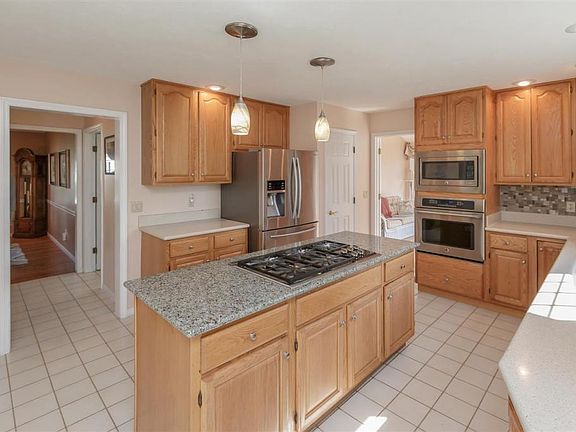 Simply REmarkable with a GORGEOUS yard and loads of updates! This one owner home has been impeccably maintained and comes with a brand new roof (July '17). The composite deck is low maintenance. The firepit is natural gas, so no tanks to fill there. The waterfall feature is soothing and peaceful. Fenced yard too! The kitchen has a wonderful flow and has Corian and Granite counters, updated higher end appliances including a newer Wolf Cooktop and 2 pantries! The light filled sunroom just off the kitchen will quickly become your favorite room in the house. The cozy family room features a wood burning fireplace with a gas insert. The front room could be a living room, office, playroom or library. Upstairs you will find a nicely updated master bath with heated floor, large tiled walk in shower and jetted tub with new tile surround as well. Nice large bedrooms too. Partially finished basement has brand new carpeting and huge storage area as well. You won't lack for closets in this house! Alarm system and sprinkler system included as well.