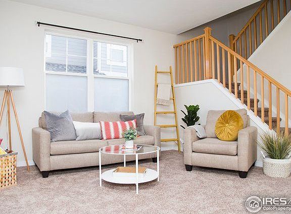 Don't miss this beautiful home in popular Harvest Park neighborhood. Lots to love in this light, bright, and well maintained home. Low maintenance living New carpet throughout!! Beautiful white cabinetry in the eat in kitchen. Separate dining area. Cozy living room with gas fireplace. 3 beds 2 full baths, plus loft space and conveniently located laundry all in the upper level. Attached 2 car garage. Unfinished basement. Close to neighborhood pool and the new Twin Silo Park!