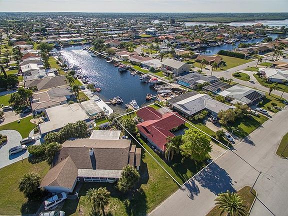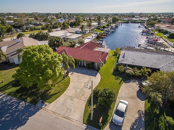 Engaging 700 feet long spectacular waterview straight down the Seaway channel!! You are only 8 minutes to open Gulf by boat from your private backyard dock! Upon return from catching your very fresh fish dinner enjoy relaxing, dining, refreshing in the Gulf breezes on the spacious screened lanai/patio, extending out from the cathedral ceiling family room through the double-wide fully pocketing sliders . . . breathing it all in every day. Beautifully maintained 1858 sq ft of generous waterfront inside living space, featuring a split 3 bedrooms and 2 baths open floor plan flowing over pretty wood laminate floors from living to dining to family rooms and kitchen gives spacious feel with water views throughout. Plus, inside laundry room. Waterfront seawall currently configured with floating dock mooring slip, also strong davits for hoisting & launching you and your boat out on countless marine exploring adventures. Mature landscaping greets you at the driveway, and the rear yard provides room for pool. Large 2-car garage. Main composite tile roof 2007; rear flat roof replaced 2008; garage door 2011. Pristine gorgeous barrier islands begin right off Gulf Harbors with Anclote Key, stringing south to Honeymoon, Caladesi, Ft Desoto were rated in the nation's top 5 best beaches. Cotee & Anclote rivers to north & south feature waterfront restaurants with boat docks! Excellent fishing, diving, water sports, shelling, island exploring right outside your door. Gated private sandy beach, 2 boat ramps, plus Yacht Club.