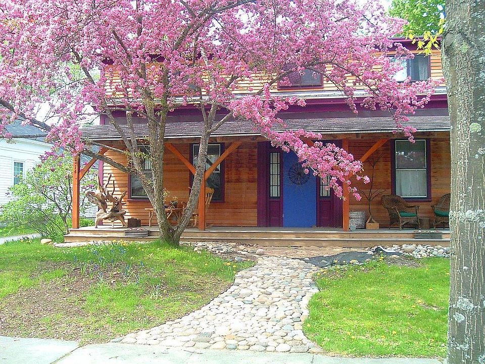 Early 1800's cape with ell - 3 bedrooms Partial basement and insulated crawl space 2 car garage with small woodworking shop, large storage space and artist studio. Option to have Gallery space to sell your wares. Sits on just over 1/2 acre in the beautiful village of Newbury Vermont. New standing seam roof (2011). New western red cedar siding (2007 - 2009). New oil hot air furnace (2009). Hardwood and tile floors. 1 and 1/2 baths. Walk-in shower. Updated wiring and plumbing. Village water. Independent septic. Screened porch and outside shower.