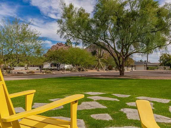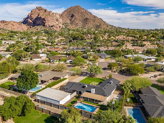 This Arcadia ranch home sits on an over 18,000sf lot in the heart of the Camelback Mountain corridor within the family friendly Park Paradise subdivision. The clean and meticulously maintained residence has been tastefully remodeled and has stunning views of Camelback Mountain. You will find rich dark wood flooring throughout the home, an open family room complete with custom built in bookcases and bright eat-in kitchen. The kitchen is equipped with Jenn-Air appliances, over-sized modern farmhouse sink, and a walk in pantry. Off the kitchen you will find a large laundry room with convenient storage. In the spacious and private backyard there is a sparkling dive pool and a large covered patio. The home features a detached 26'x24' garage and 26' x 22' storage space. A 2-car car-port is attached to the house. The front has a beautiful grass lawn and incredible views of Camelback Mountain. Walk to The Global Ambassador, Steak 44, The Henry, Buck and Rider and all other fine Arcadia dining establishments. The home is located within the Hopi Elementary boundaries and 15 minutes from Phoenix Sky Harbor International airport. Owner will install Level II EV charging with a 2-year minimum lease commitment. The home is not offered furnished.