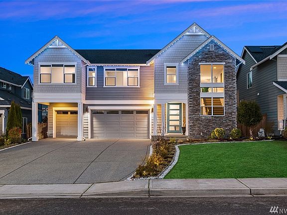 Modern design with open floor plan in Renton Highlands offers 2 stories ceiling in the living room, extra-large windows bring in more natural light. Open metal railing, 9 ft ceiling on the main level, A/C unit, nest thermostat, smart light switches, pre-wired for speakers, ring doorbell, smart lock. The chef's kitchen has an oversize island, quartz countertops, full-height backsplash, built-in microwave & oven. The master suite has double doors, a vaulted ceiling, double sinks, a soaking tub & WIC, Elfa walk-in closet shelving & an entertainment deck. Beautiful backyard perfect for entertaining year-round with patio enclosures. 3 car garages. Bus line & walking distance to Maplewood Elementary & Hazen HS, QFC & much more.