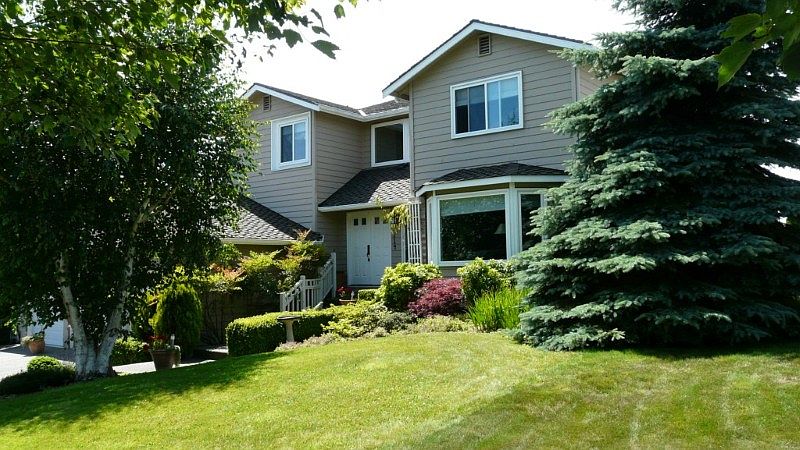 Remodeled for 2 story home on cul-de-sac. 4 spacious bdms. Large master suite with lovely private bath & walk-in closet. Sound & mountain view from deck of bdm./office. Bay window in living room. Kitchen has corian countertops & steel appliances. Open concept family room with gas log fireplace adjacent to kitchen with eating space. 50 year Presidential roof. 3 car garage with insulated doors. Covered back deck, with built in bench. Private backyard, with potting shed.