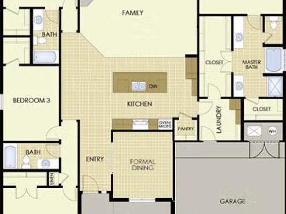 This plan features a 4-bedroom, 3-bathroom with over 2,500 square feet of living space, a formal dining room, and a spacious family area for plenty of room to play and dine. The primary suite includes two bathroom vanities, walk-in closets, and a separate tub and shower. Also,enjoy the open layout living area and a large single-level island in the kitchenExterior Elevation Selected: Shari