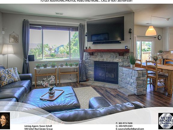 Beautiful, contemporary family home with 4 bedrooms and 3 baths. The main level features updated flooring, updated color palette, open foyer ceiling to 2nd floor, enclosed staircase to upper level with lots of natural light. There's a stone-faced gas fireplace leading into the modern kitchen. The kitchen has two-tone 42" cabinets, butcher block counters, farm sink, SS appliances, gas range, subway tile backsplash and a large island with lots of additional storage plus a dining area and large pantry. The kitchen has access to an oversized stamped concrete patio and grassed yard with full fencing. There's lots of room for grilling, entertaining family and friends. On the upper level of this home are all 4 bedrooms including the master suite with en suite bath and walk in closet. One of the guest rooms also has a walk in closet. All bedrooms have ceiling fans and brand new carpet on upper level! One bedroom has wood laminate flooring and makes a great home office space. Furnace replaced 2 years, A/C 1 year, New Windows 3 yrs, Exterior Paint 4 yr. The 2 car garage has lots of storage shelves and a utility sink. The floor is also epoxy coated! This home has modern lighting throughout and a dual zone climate control for upstairs and the main level. This home is in the Award-winning Cherry Creek School District and close to E470 for direct commute to airport, Denver, DTC I225, Buckley AFB, Cherry Creek, Aurora and Quincy Reservoirs and the Southlands Mall.
