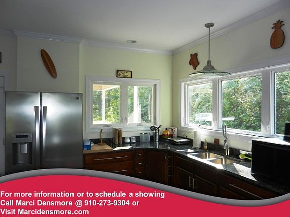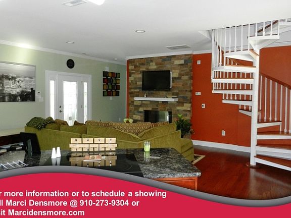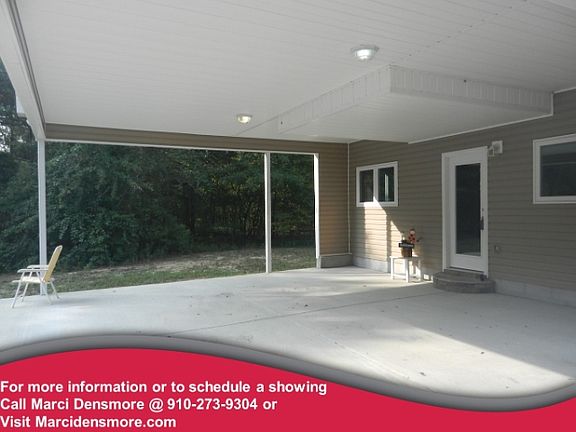 Extremely unique like new home on over 7 acres. Very open floor plan, hardwoods throughout first floor, see through fireplace from living to master, custom closet, tiled shower and contemporary sink in master. Granite countertops and stainless appliances including a stove that has never been used. Upstairs guest suite to include a full bathroom, laundry and walk out patio. 3 car detached garage and covered patio. For more information or to schedule a showing call Marci @ 910-273-9304 or visit www.marcidensmore@kw.com