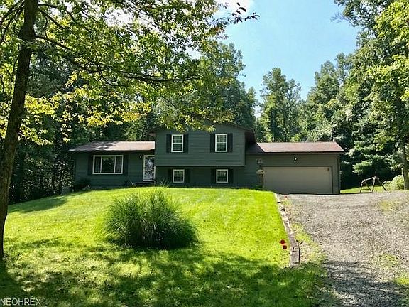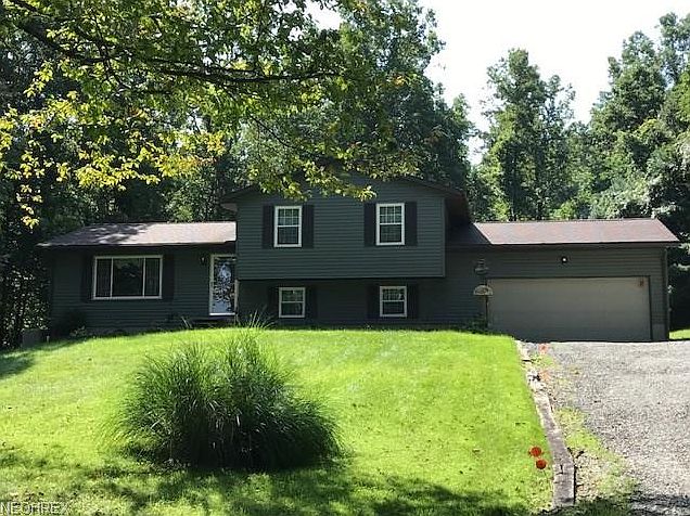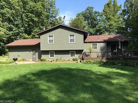 Welcome to this recently updated 3br. 2 1/2 bath quad level home with new roof, siding, windows, furnace, c/a, some new flooring, and kitchen counter tops. This beautiful home has a wrap around deck with slider leading off the formal dining room, sunlit living room, family room with brick fireplace, and office area and 1/2 bath off the 2 car garage. There's tons of storage inside the home and out in the several sheds on the property. The 12 gorgeous acres you are overlooking are private and has a stocked pond with well and septic. The seller has homestead taxes which are included in the current taxed listed and seller is to retain any and all mineral rights to the property.