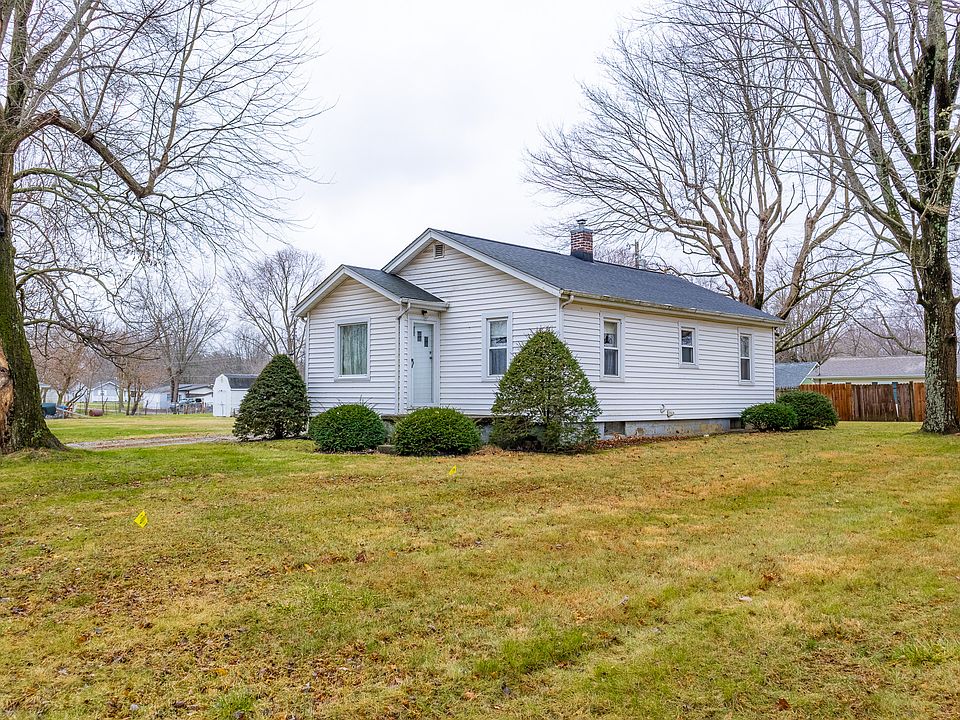Well built 3 bedroom, bungalow nestled on spacious property spanning 6 lots totaling over one acre. This cozy home has been cherished by the same family since it was built and is ready for a new owner to add their own personality. The exterior boasts low maintenance vinyl siding & newer vinyl windows. Basement offers a shower, washer/dryer, and plenty of storage space. Eat-in kitchen with gas range, refrigerator, and large pantry/broom closet. Some hardwood and possibly more hardwood under carpeting. The home is situated on 4 lots, with an additional two separate deeded lots - all to be sold together. A rare opportunity for expanded possibilities. City water and sewer, large trees, 1 car detached garage. Updated 200 amp service.