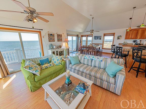 Welcome to your dream waterfront paradise, a sprawling 2,876 Square foot home in Frisco, perfectly blending luxury, comfort, and the serene beauty of coastal living. Situated directly on the water, this property offers unobstructed views of the Pamlico Sound, creating a picturesque backdrop to your daily life. The home's upper level features an open floor concept with a large kitchen adorned with granite countertops, alongside a half bath and an en-suite, combining elegance with practicality. The middle level is home to two large en-suites, a laundry room, and two additional rooms equipped with beds for extra sleeping space, making it ideal for hosting guests or a growing family. Descend to the lower level to discover a spacious game room, full bath, and ample storage room for all your gear, topped off with the convenience of an elevator connecting each floor. For sports enthusiasts, this home is a dream come true. It includes a private boat dock providing easy access to the Pamlico Sound, perfect for kiteboarding, kayaking, paddle boarding, and other water sports. Anglers will be in paradise, with the property's proximity to some of Hatteras Island's most prolific fishing spots. Just steps from your front door, you can indulge in catching citation drum, trout, and Carolina blue crab. Set on a quiet, paved private road, the home offers a private and peaceful retreat. Here, you can escape the hustle and bustle of daily life, ensuring your privacy and serenity are always intact. Each level of the home flows seamlessly, catering to both the need for communal gatherings and private moments. This home is more than just a residence; it's a lifestyle haven, offering a unique blend of adventure, tranquility, and luxury living. With its unparalleled access to beach and water activities, it truly represents the best of Hatteras Island living.