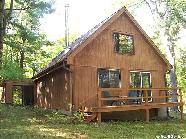 Country A-frame/chalet on a wooded setting, almost five acres. Two car attached garage. Open floor plan, dining and living room with woodstove and sliding glass door to deck. Large loft area with skylights. Nice breezeway from the garage that also leads to a heated sunroom. Peaceful location on a dead end road not far from town, lakes and ski resorts.